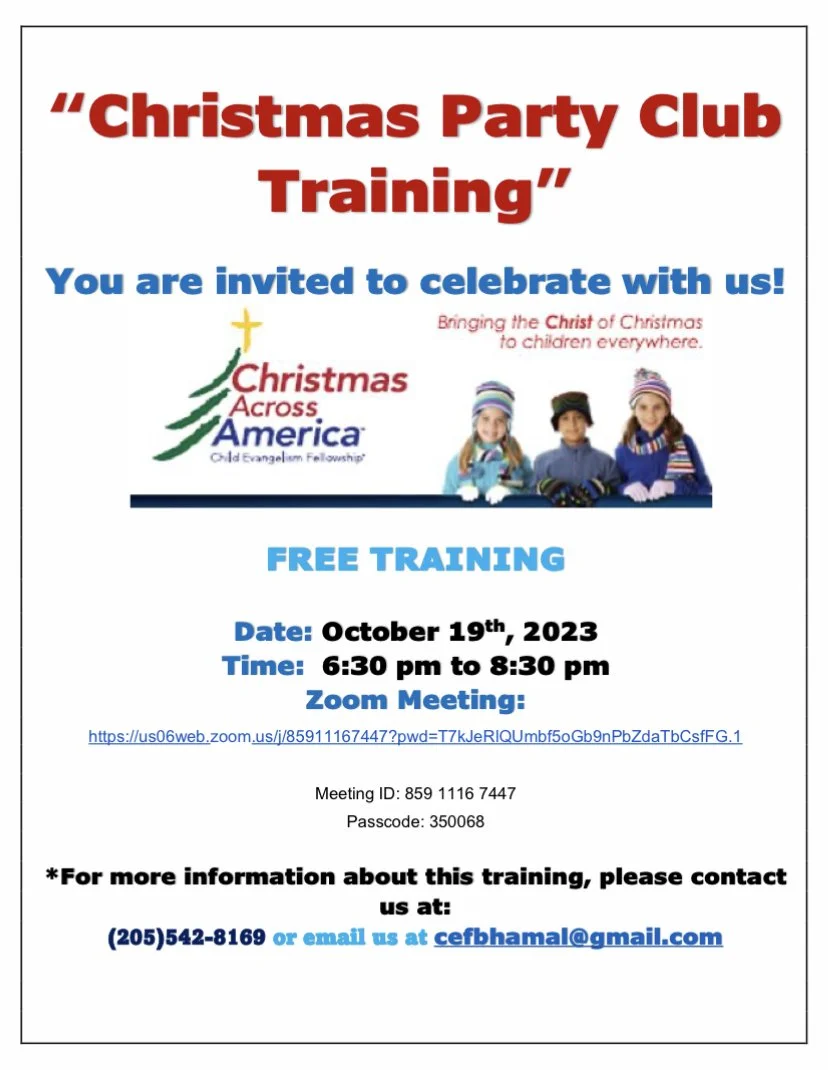 If you have not attend a Good News Club training and want to volunteer to teach in a Christmas Party Club (or if you are a current Good News Club volunteer and want to learn more), this training will give you the tools you need to teach an exciting Christmas Party Club.